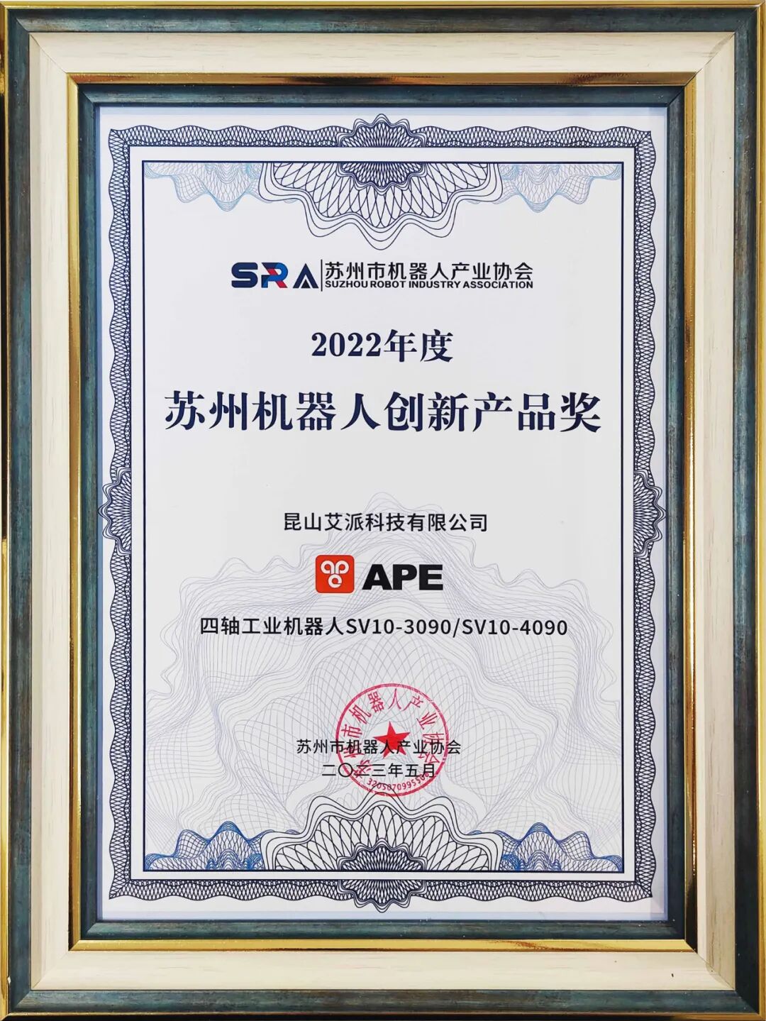 5月12日,苏州市机器人产业协会主办的,2023第三届苏州市机器人产业发展大会暨苏州市机器人产业协会换届大会大会以“新技术、新应用、新发展”为主题搭建机器人领域交流平台,促进机器人及智能制造产业更好发展。,积极加强行业交流,推动机器人产业链的协同发展,凭借新产品三/四轴工业机器人SV10-3090/SV10-4090在2022苏州机器人企业年度评选中获得!