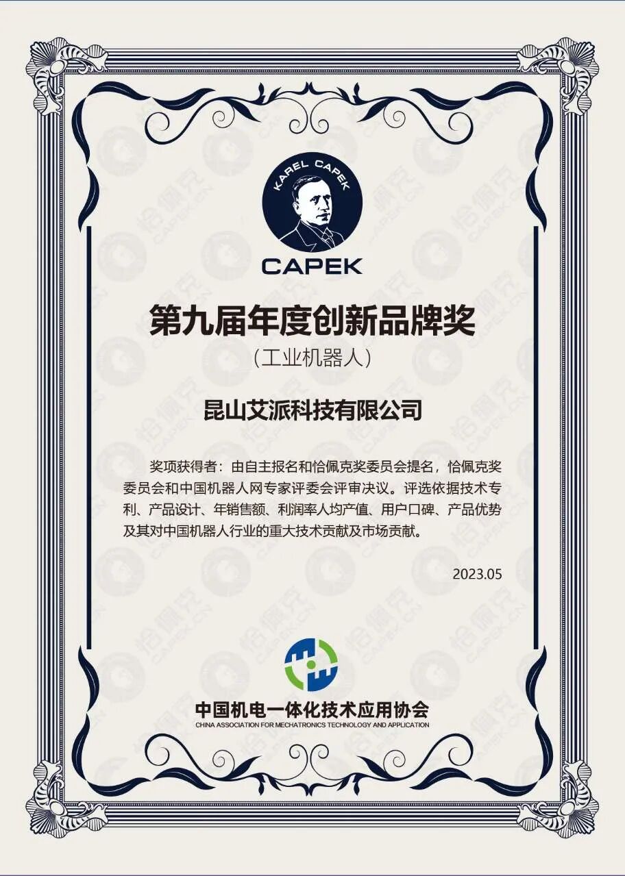 5月17日,2023第十三届中国国际机器人高峰论坛暨第九届恰佩克颁奖仪式在芜湖举行,本次大会延续“遇见恰佩克、预见新未来”的主题,汇聚国内外800余家机器人行业知名企业,共同围绕机器人的创新应用与行业发展进行重点讨论,艾派科技积极参与了评选及会议!在过去的一年中,艾派科技凭借着完整的质量体系、”奖。